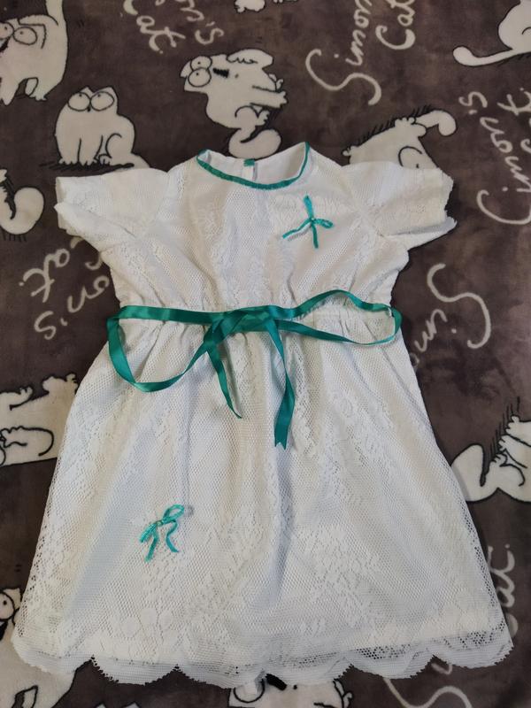 Ошатна біла сукня на дівчинку 2 років. Є підклад. Довжина 49см, ПОГ і ПІТ 30см, плечі 19см.