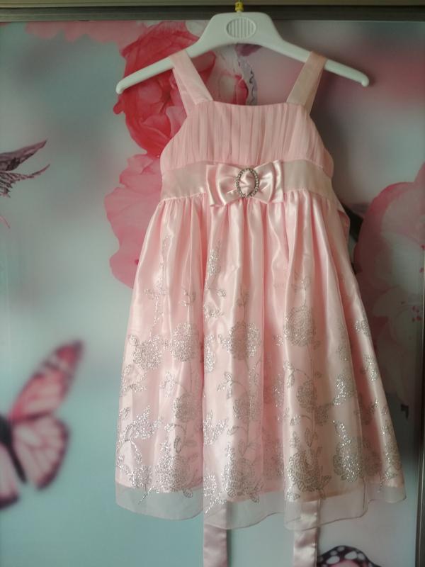 Дуже ошатне плаття для Вашої красуні можна використовувати для всіх праздничньіх меропреятий.Замерьі: ширина під мьішками 31 см,ширина по талії 28 см Від талії розширюється.На спідниці з дедерона напьіление цветьі розьі.Довжина виробу по спинці 55см. Долина бретелей в складеному вигляді 10 див. По спинці потайний замок довжиною 17 див. Плаття надевалось один раз на ранок.Дефектів немає.
