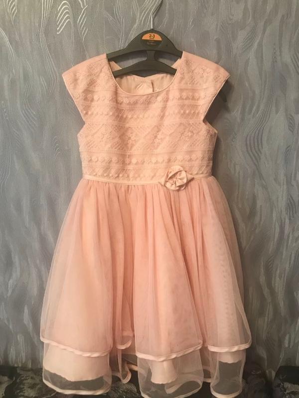 Красиве, ніжне, ошатнішою плаття на дівчинку 4-5 років ТМ Jona Michelle (В"в'єтнам) Колір рожево-персиковий Куплене у Канади. Один раз одягли на свято. На грудях ніжна вишивка на дерероні. В середині підюпник з дерероновою рюшою. Зверху на спідничці теж дедеронова спідницка у два ряди. Дивіться заміри, оскільки нема вказано віку на бірці. ПОГ - 30 см ПОТ - 28 см Довжина - 65-66 см
