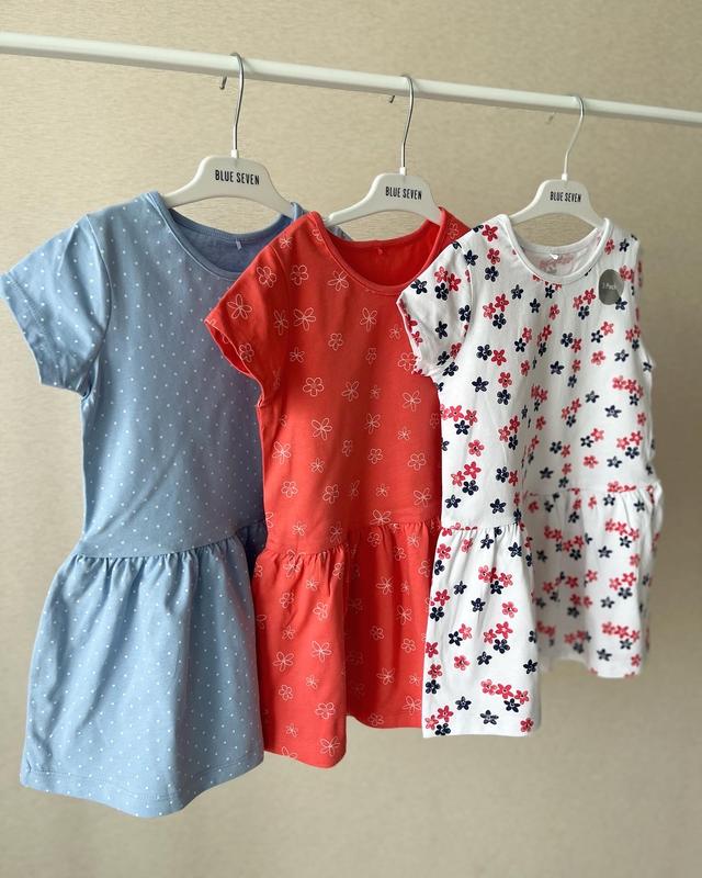 Сукні для дівчат фірми George Комплект з 3-х штук Матеріал: 100% бавовна Розміри: 2-3 роки (92-98 см) Заміри: довжина 51 см, ширина 29 3-4 рокі (98-104 см) Заміри: довжина-56 см, ширина 31 Ціна 170 грн/ штука