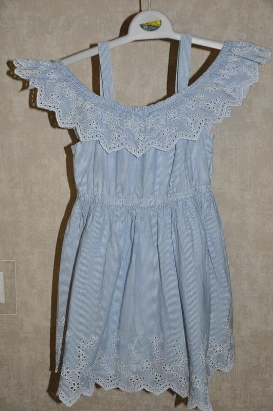 Ніжне плаття сарафан Primark c прошвой. Сукня невагоме, пошитий з тонкої бавовни. Талія на резинці. Ідеально підійде для спекотної погоди. Виглядає дуже красиво. Розмір: 7-8 років (128 см), виміри (напівобхват грудей - 33,5 см, довжина з бретелями загальна - 68 см, довжина до талії - 29 см) Стан: ідеальний Доставка: Оплата на картку, Доставка НП, УП
