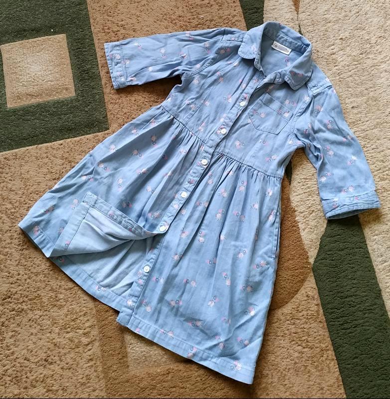 Ніжне актуальне платтячко голубого кольору,з кишеньками. Розмір 104. Котон. Стан ідеальний. За дод.питаннями пишіть у пп.