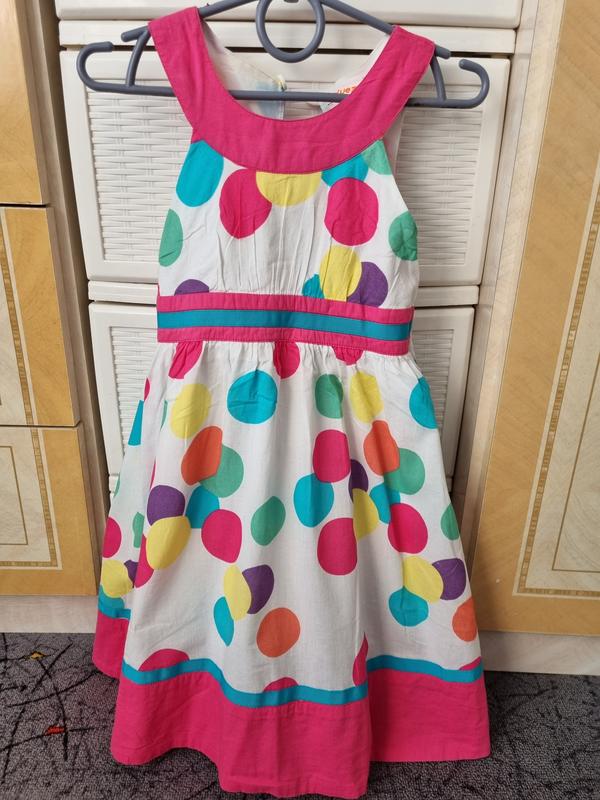 Нарядне плаття для маленької модниці, яка буде виглядати яскраво в літню пору. Дуже легке, внизу на тонкій натуральній підкладці, ідеально для літа. Підходить для повсякденного носіння. Ззаду на гумці, що зручно для будь фігурки.
