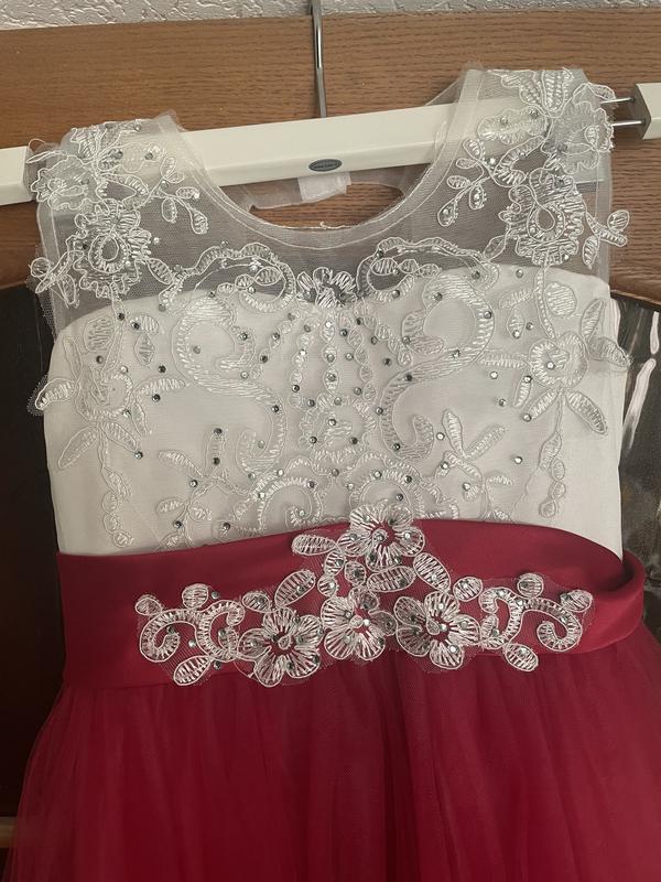 Пропоную дуже гарна сукня зі шлейфом на вік 9-10 років , було одягнене 1 раз на ДР, замовляли на Алі - експрес, стан відмінний. Довжина по передній частині 110 см, ПОГ 33 см, пояс 33 см