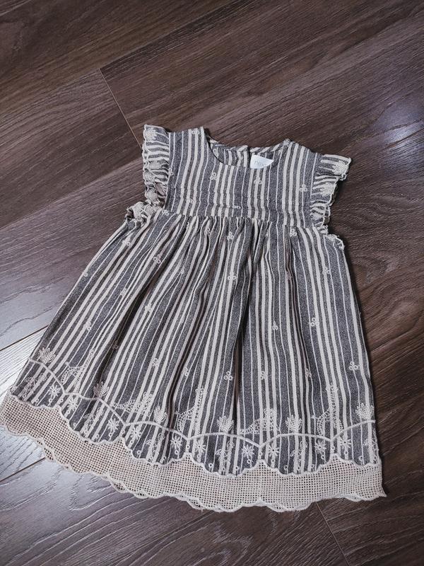 Гарненьке платтячко з вишивкою та мереживом по подолу,по низу вишиті жирафи і тигренята, дуже милашное і стильне. Ідеальний стан ,склад тканини: бавовна і віскоза. Заміри : плечі 23см, довжина 52см. Робіть вибір свідомо, повернення не має.