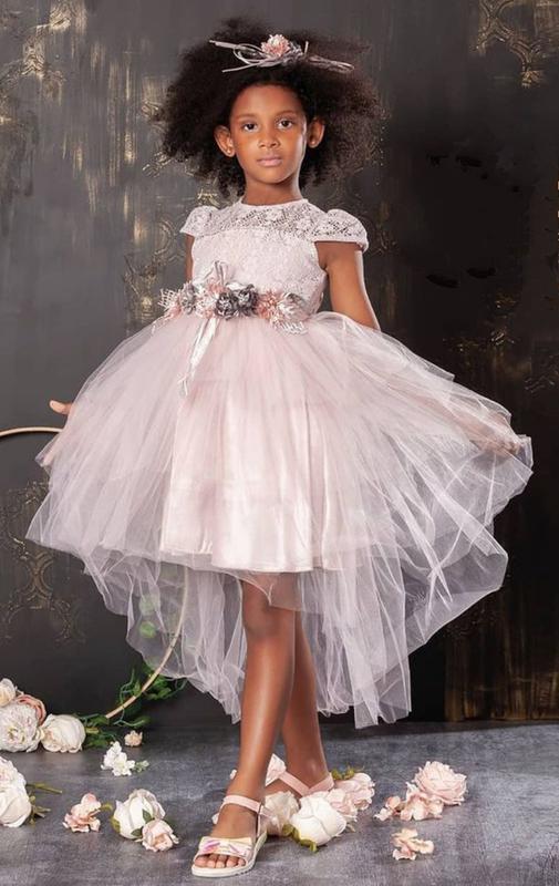 Святкова сукня для дівчинки на бірці 5р. заміри на вимогу ♥️ колір: персик ззаду фатін довший. Квітка на поясі знімається. верх гіпюр. дуже гарна сукня. виробник: Туреччина "Сгеміх elegant product"