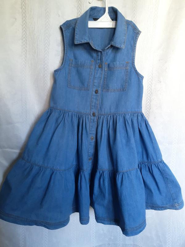 100% котон Дитяча тонка джинсова ярусна сукня, плаття, ошатний легкий літній сарафан на дівчинку. виміри: плечі 25 см, НО грудей 32 см, НО талії 32 см стегна і низ вільно, Довжина від плеча 64 див. пройма 11,5 см Літній джинс. у дуже хорошому стані, дивимося весь мій профіль