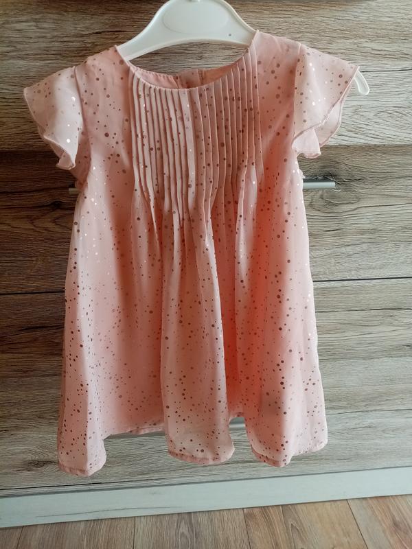На 9-12 міс. Ніжно рожеве, із бликучим крапочками.