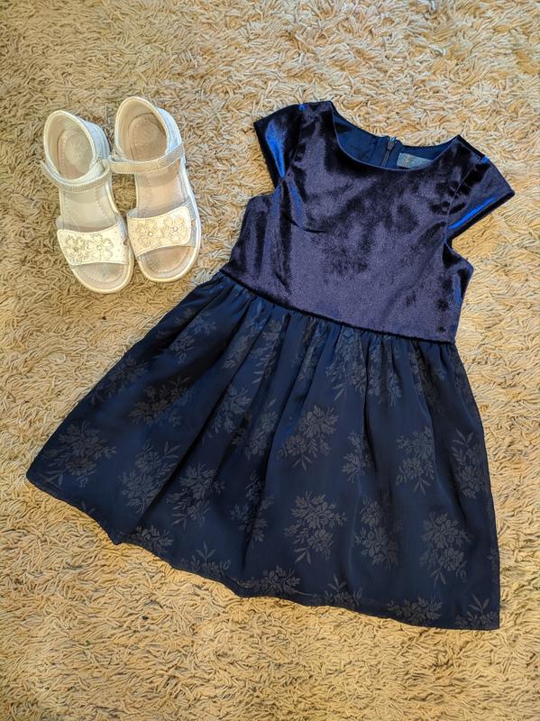 Нарядне плаття для дівчинки 4-6 років р. 110-116 Стан відмінний. Колір синій. Ззаду на блискавці. Заміри: довжина 59см, довжина верху до талії 23см, довжина спідниці 36см, ширина під руками 30см.