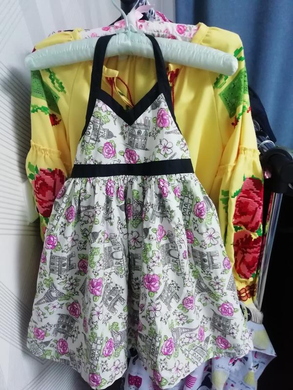 Пишний сарафанчик з різнобарвним принтом. Ззаду зав'язується на бант. Фірма "Maggie Zoe" Стан - чудовий, без нюансів. Тканина: 100% котон Р-р 116 Відправка Укрпошто та Новою поштою після 100 % оплати