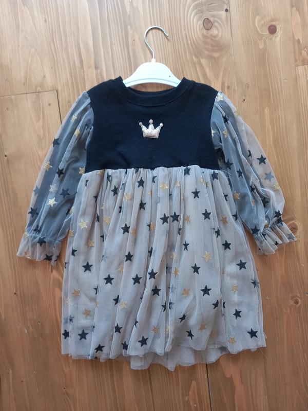 Дуже гарна та стильна сукня.. має два шарі фатину та підкладку. довжина-57см, рукав 33см дуже добре тягнеться