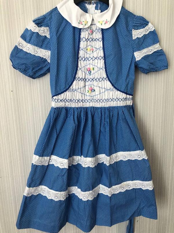 Дитяче плаття,з воротником.Взаді є застібка та пояс.Принт зпереду – небагато квітів.
