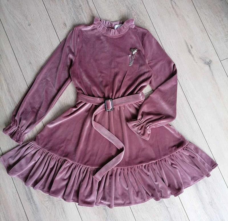 Сукня повсякденна і одночасно святкова. Тканина- велюр рубчик мягка на дотик. В талії є резинка пояс знімається Прикраса також знімається. Розміри: 128-1 шт 134-1 шт 140-1 шт 146-1 шт 152- Кидс шууз