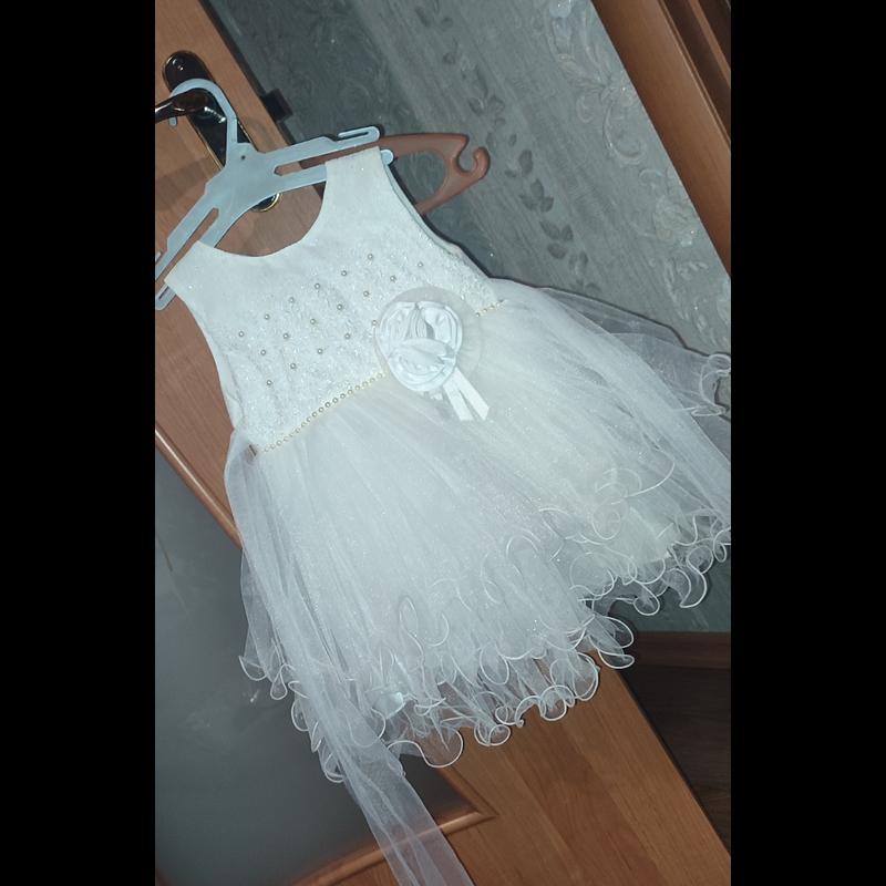 Сукня а ідеальному г, дуже пишна, одягали пару разів, також з ним іде такаж заколочка на голову, як на сукні бант, можна на рочок одягнути і менше. Дивіться заміри Довжина 50, довжина корсет 17, ог 26, плечі 20
