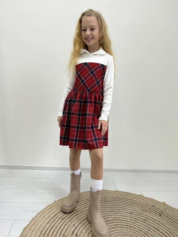 ток Неймовірно ніжна новинка🥰 яка чудово підійде і для святкування🌷 і для прогулянки💕Плаття з капюшоном👌,поєднання рубчик піньє та клітинка❤️ заміри- довжина /пог/ довжина рукава 128-64/35/43 134-65/35/46 140-68/37/49 146-72/37/51 152-77/40/54