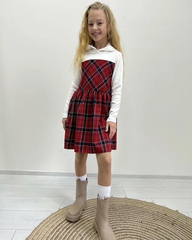 Ток Неймовірно ніжна новинка🥰 яка чудово підійде і для святкування🌷 і для прогулянки💕Плаття з капюшоном👌,поєднання рубчик піньє та клітинка❤️ заміри- довжина /пог/ довжина рукава 128-64/35/43 134-65/35/46 140-68/37/49 146-72/37/51 152-77/40/54