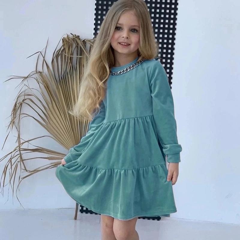 М В наявності 🧡 Чудове платтячко для дівчинки королівський велюр приємне до тіла прикрашено ланцюжком якість люкс заміри:пог/довжина/рукав 122-32/62/44 140-35/73/50 146-36/75/52 +-2см 122-1шт 140-1шт 146-1шт