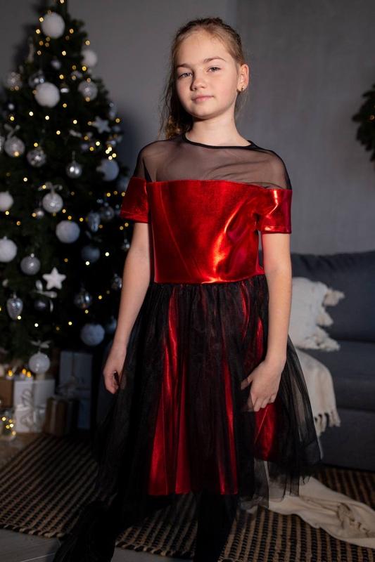 Святкова сукня. Дуже стильна. Блискуча екошкіра. Кольори: золотий, червоний. Розміри 128, 134, 140, 146 Підкладка знизу атлас, тканина зверху екошкіра і євросітка. Замок збоку Заміри 128 розмір-плечі 28, талія 29, довжвід плеча 75, 134- плечі 29, талія 31, довж 79, 140- плечі30, талія 33, довж 82, 146- плечі31, талія 35, довж 85. Розміри в наявності необхідно уточнювати