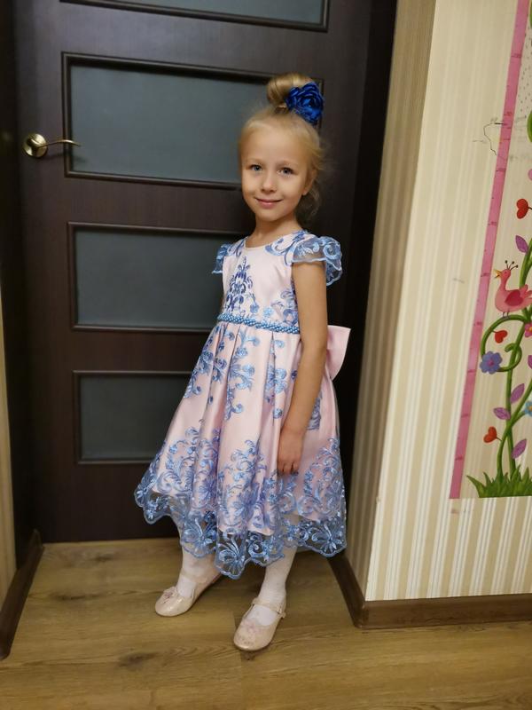 Платье в очень хорошем состоянии. Написано на рост 110. Бусинки не облезшие, все целое. Есть немного зацепок, но они при носке НЕ заметны. Талия 28см. Плечи 21.5см. Длина по спинке 65см.