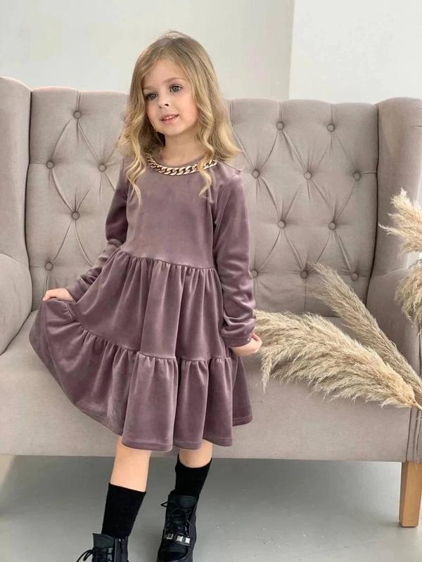 Чудове платтячко для дівчинки королівський велюр приємне до тіла прикрашено ланцюжком якість люкс Ціна 600 грн заміри:пог/довжина/рукав 122-32/62/44 128-33/65/46 134-34/70/48 140-35/73/50 146-36/75/52 +-2см