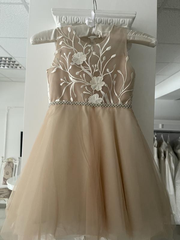 Нова дитяча сукня, кольору капучіно, зверху вишите мереживо, пришитий пояс з камінців та бісеру, фатинова спідниця, ідеально підійде на 3-4 роки