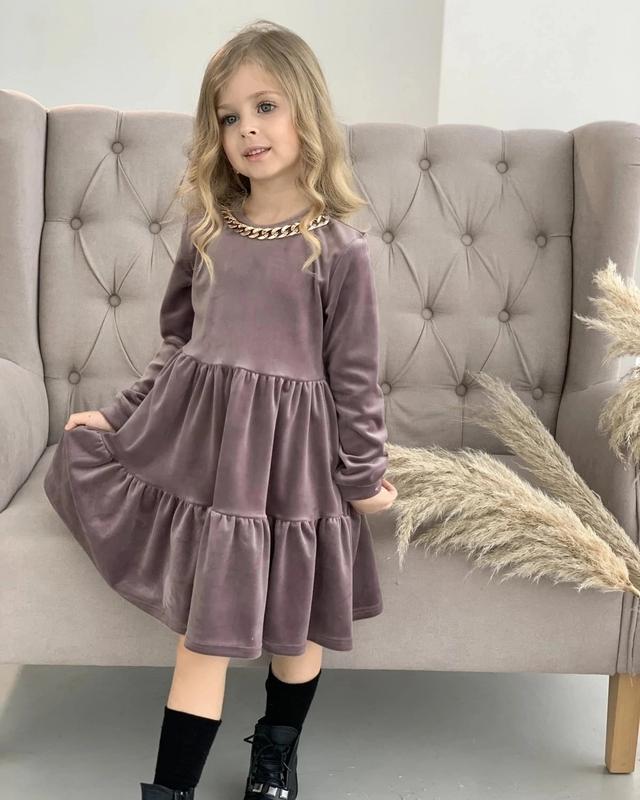 Ира б Чудове платтячко для дівчинки королівський велюр приємне до тіла прикрашено ланцюжком якість люкс пог/довжина/рукав 122-32/62/44 128-33/65/46 140-35/73/50 146-36/75/52 +-2см