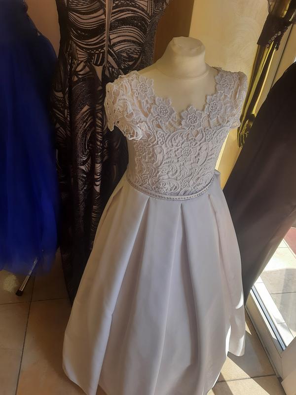 Дитяча сукня білого кольору ,оригінальне мереживо поєднано з атласом!!!