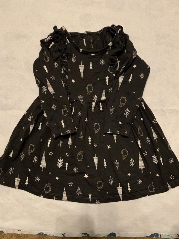 Чорна сукня в новорічний принт від фірми matalan. Стан ідеальний. Виглядає на дитині дуже стильно. Супер буде до фотосесії чи святкування нового року