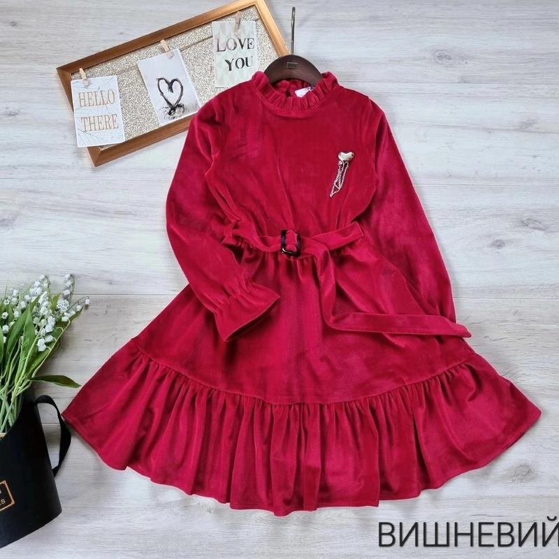 Ландыш Модне і ефектне платтячко Тканина велюр рубчик, дуже приємна і м'якенька поясок в комплекті якість люкс РЕКОМЕНДУЮ!! 128(4 шт)-довжина 69,рукав 47,пог 33 134(4 шт)-довжина 73,рукав 49,пог 35 140(4 шт)-довжина 76,рукав 52,пог 36 146(4 шт)-довжина 80,рукав 54,пог 38 152(5шт)-довжина 83,рукав 56,пог 40 +-2 см