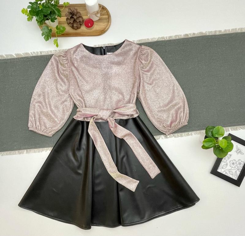 🪁Праздничное платье эко кожа и трикотаж с люрексом рукав 3/4 под поясок 🪁по спинке глубокая молния РЕКОМЕНДУЮ! цена 690 грн размер/🪁длина/пог/рукав от плеча 140/🪁74/38/37 146/🪁77/40/39 152/🪁79/41/40 158/🪁83/42/42 164/🪁85/43/43 +-2см арт77