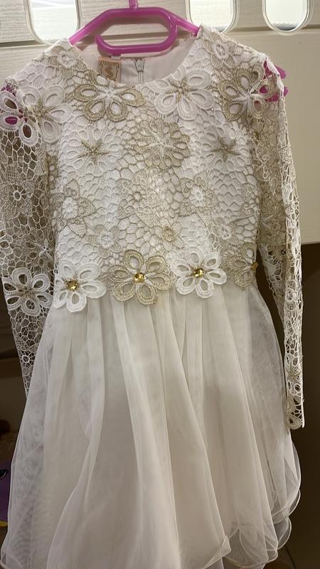 Сукня для дівчинки з пишною спідницею, на зріст 116 см, з ажурними рукавами.