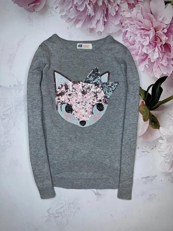 Джемпер тонкой вязки Рисунок и з пайеток Состояние идеальное 🏷️H&M 6-8 лет Длина 43/48. ПОГ 35. Рукав 47.