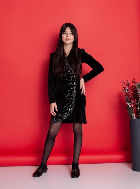 Гарненьке нарядне платтячко тканина велюр гарної якості На запах, в поясі пришите Ззаді зав'язуються на поясок довж/рукав від плеча/пог 140р-71/49/36 Ир д