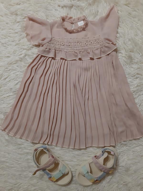 Розкішна гофрована шифонова сукня Некст в ніжному пудровому кольорі, 4 роки, стан ідеал. Довжина 55,5см, ПОГ 29,5 см