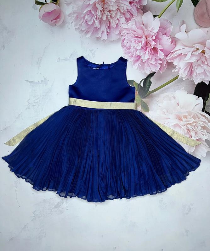 Синє, пишне плаття із золотистим пояском. 3 роки Monsoon 500 грн довжина 60 (22). ПОГ 29