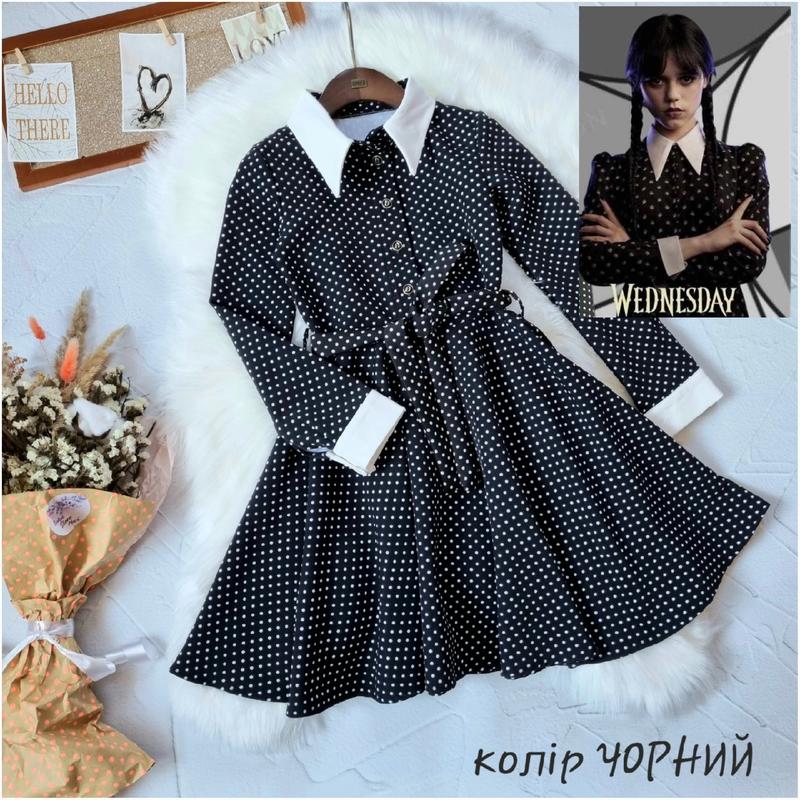 ландыш В НАЯВНОСТІ!!! Плаття для дівчат, які в тренді. тканина в мілкий горошок, манжети і комірчик біленькі. Класика у всій красі. Тканина креп костюмка . Поясок в комплекті 128(2 шт)-довжина 67,рукав 46,пог 32 134(5 шт)-довжина 71,рукав 47.5,пог 34 140(5 шт)-довжина 73,рукав 50,пог 35 146(3 шт)-довжина 77,рукав 52,пог 36 152(7 шт)-довжина 82,рукав 54,пог 37 +-1 см