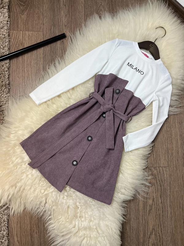 ток Стильне весняне платтячко тканина рубчик -дуже приємний до тіла та мікро вельвет. Прикрашено декоративними гудзиками , є поясочок заміри довжина\рукав\пог 134/67/43/36 140/71/45/37 146/72/48/38 152/76/51/40 158/79/53/42