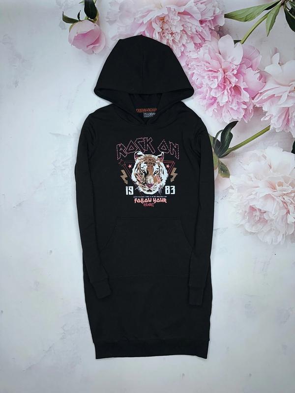 Довга чорна сукня Утеплене баечкою Кишеня муфта Стан нового 🏷️TWODAY 146-152/11-12 років Довжина 75. ПОГ 39. Рукав 54