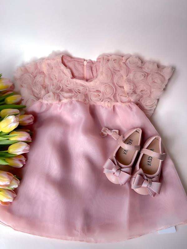 Ніжна сукня з органзи , а ці квіти 😍 Для ваших маленьких принцес ! Розміри: Пудра - 80,90см Беж - 80,90,100см ЗАМІРИ : 80р( 9-12міс) - довжина 47см , ширина грудей- 31см 90р ( 1-2р) - довжина 48см , ширина грудей 34см 100р (2-3р) - довжина 50см, ширина грудей 34см Нові , з бірками ! Босоніжки - 395грн Заколка - 35грн