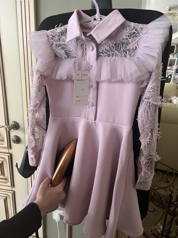 Неймовірна сукня Святкова та надзвичайно ефектна - тканина: костюмка,фатін та мереживо 3-D з пайетками - на гудзиках - спідниця з фатіну зйомна - вона варта вашої уваги Розміри: 122см.2шт. 128см. 2шт. 134см. 2шт. 140см. 2шт. Заміри: +- 2см. руква від/плеча/довжина пог 122 - 44/65/29/ 128 - 46/68/31/ 134 - 48/70/33/ 140 - 49/72/35/