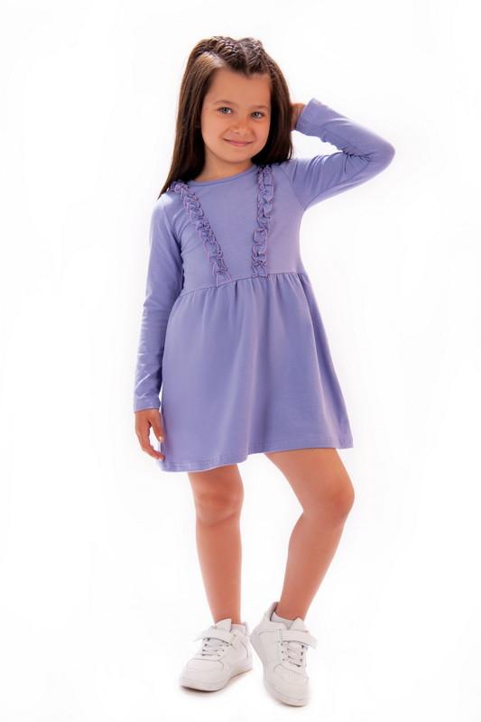 Сукня для дівчаток із однотонного стрейч-куліру. Модель з довгими рукавами, округлим вирізом, спереду на кокетці прикрашено рюшами, низ сукні з призборкою. Сукня представлена у декількох кольорах на будь-який смак. Полотно хорошої якості, натуральне за складом, не линяє, може давати усадку після прання. Полотно: стрейч-кулір Склад: 95% бавовна, 5% еластан Рекомендації з догляду: прати при температурі не більше 30°C. Допускається прання у режимі "ручне" або "делікатне".