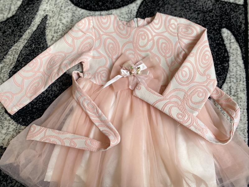 Дуже гарненьке та гарядне платтячко для маленької принцеси на 1-2 рочки але краще оріентуйтесь по замірах Довжина -47 Рукав 32 Плечі 25 Талія 29 Ззаді талію можна регулювати за допомогою завязок Стан нового