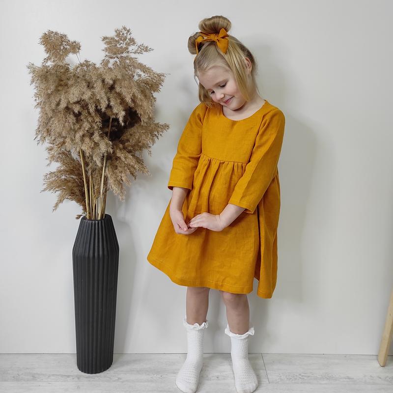 Базовое платье из натурального льна. Удобная и комфортная модель. Рукав 3/4. возможен вариант с коротким рукавом. Полностью ручная работа. 100% помякшений льон. В наличии платье в горчичном цвете размер 110 (5 лет). Возможен пошив под заказы в размерах от 1 до 10 лет и в разных цветах. Цена на пошив от 1400грн (зависит от размера)