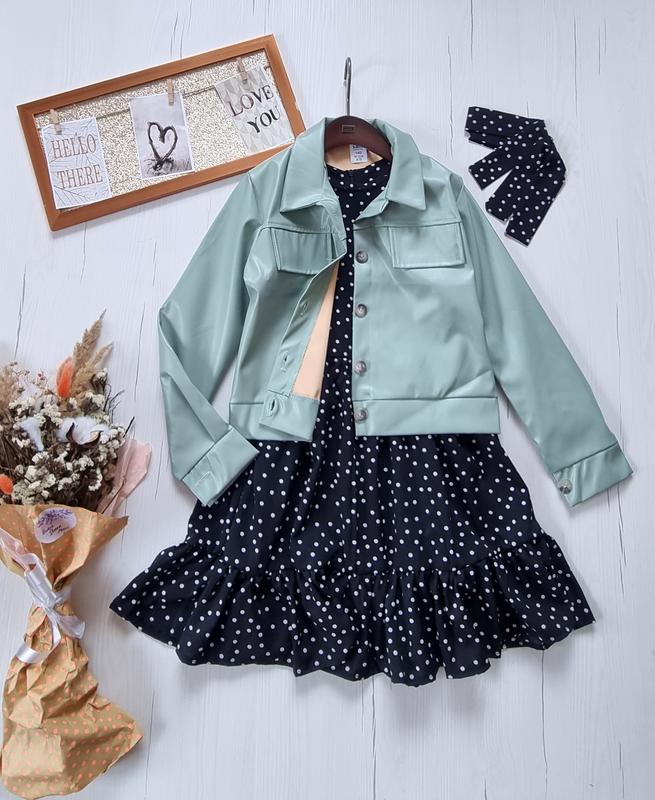 Стильний весняний комплектик Курточка еко шкіра і сукня- тканина софт РЕКОМЕНДУЮ!!! 134р (1 шт) довжина сукні 66,рукав 45, пог 31,довжина куртки 40,рукав 47,пог 39 140р (1 шт)довжина сукні 69,рукав 47, пог 32,довжина куртки 42,рукав 49,пог 40 146р (1 шт) довжина сукні 72,рукав 50, пог 33,довжина куртки 44,рукав 51,пог 41 152р (1 шт) довжина сукні 76,рукав 52, пог 34,довжина куртки 45,рукав 52,пог 41 158р (1 шт) довжина сукні 80,рукав 54, пог 35,довжина куртки 46,рукав 55,пог 42 +-1см