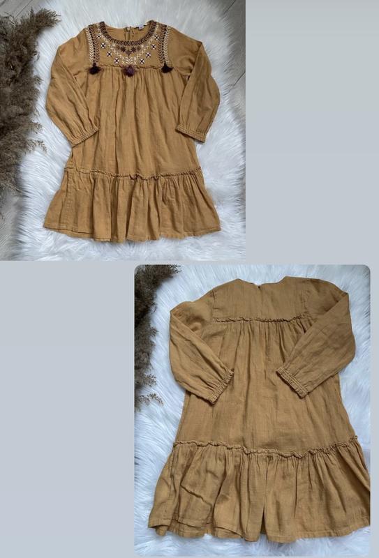 Фото на тілі нема Застегивается На молнию сзади Есть вышивка Подойдет на 4-6 лет ориентуйтесь по замерам Фасон свободный цвет бледно желтый Из нюансов -е пятна на фото указано, не критически в цене учтены / продается так как есть без притензий и без возврата Длина 61,5 см) Плечи 25,5 см) Рукав 38 см) Пог 36 см) Пот 44 см) Поб 43,5 см) Снизу 70-75 см)