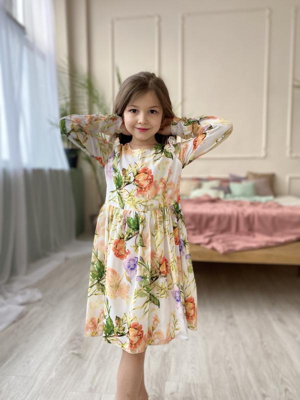 Сукня з квітковим принтом. Легка тканина (100% шифон). Ідеально підійде як для святкових подій, так і для повсякдення. Приємний віскозний підклад приховує всі внутрішні шви, що забезпечує комфорт. Розміри в наявності 134, 140, 146, 152. Відправка НП або УП.