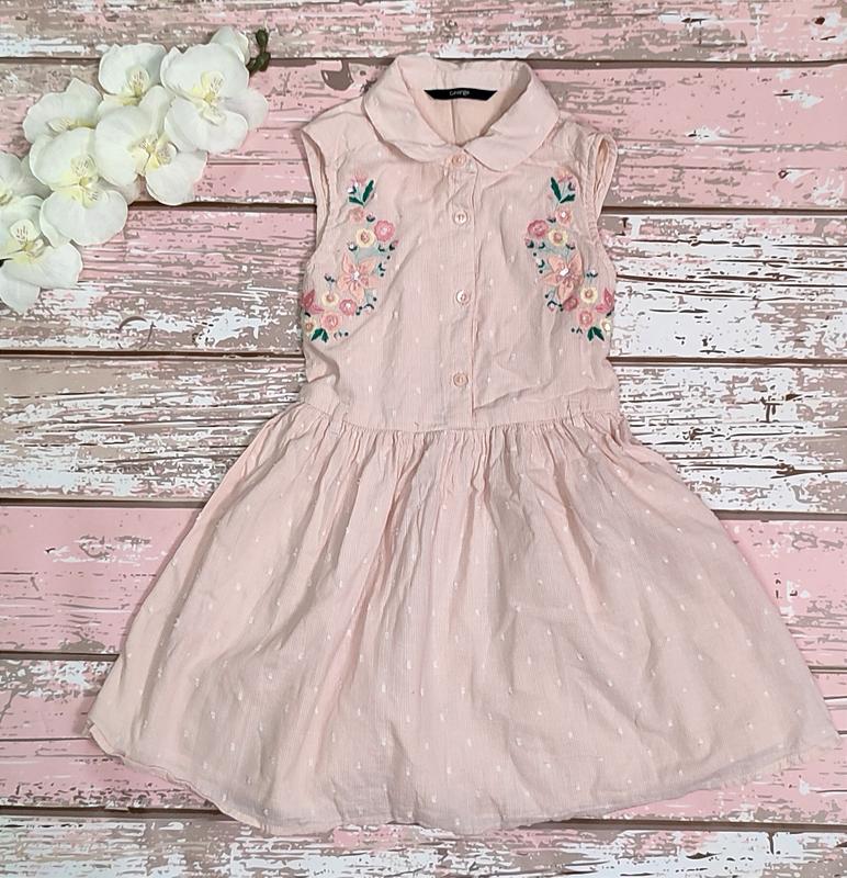 Сукня ніжно рожевого кольору, з гарними вишитими квітами. Розмір 5-6 років. Довжина 60 см, ширина 29 см.