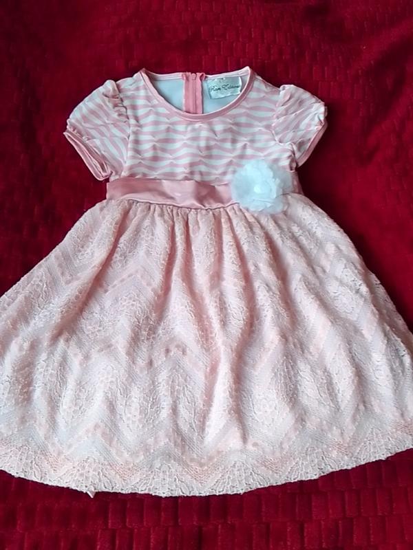 дуже красиве персиково - рожеве платячко з мережевою спідничкою на пишних підкладках. Довжина 56 см., ширина плечей 24 см., півоб'єм талії 29 см.