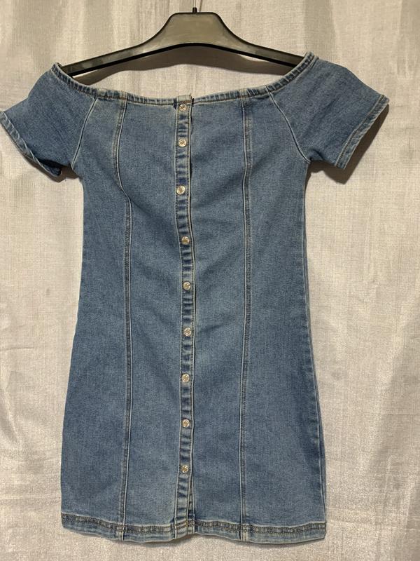 Сукня з широким вирізом горловини та спущеними плечам . Заміри: довжина - 64см., виріз - 40см., ПОГ - 34см., ПОТ - 33см., ПОБ - 39см