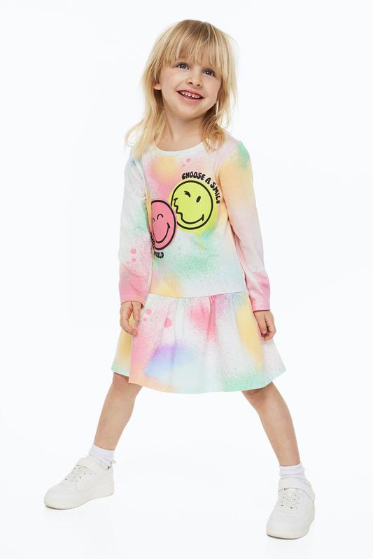 Бавовняне плаття з малюнком H&M на 2-4 роки на р.98/104. Плаття з м'якого бавовняного трикотажу з принтом по всій поверхні. Круглий виріз горловини з вузькою окантовкою та довгі рукави. Склад. Бавовна 100%.